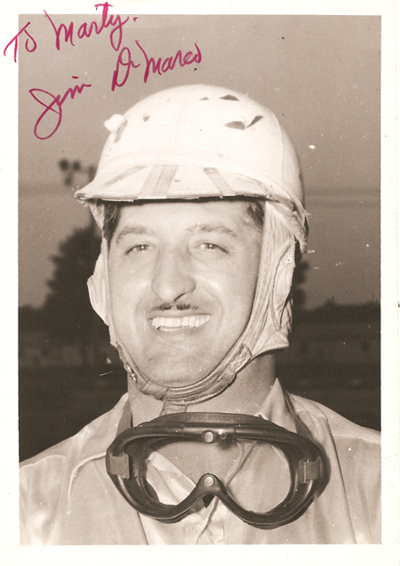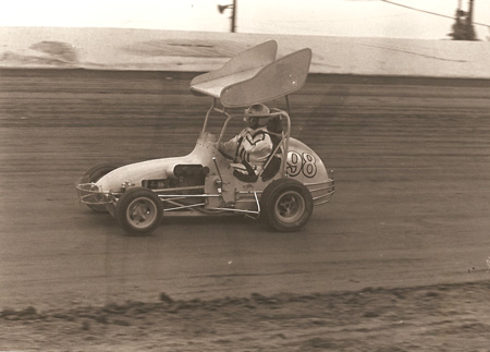 Here is Jim in his last midget. It was in this car that he had the accident that injured him so badly. At the time of this photo, Jim was in his 60's. |